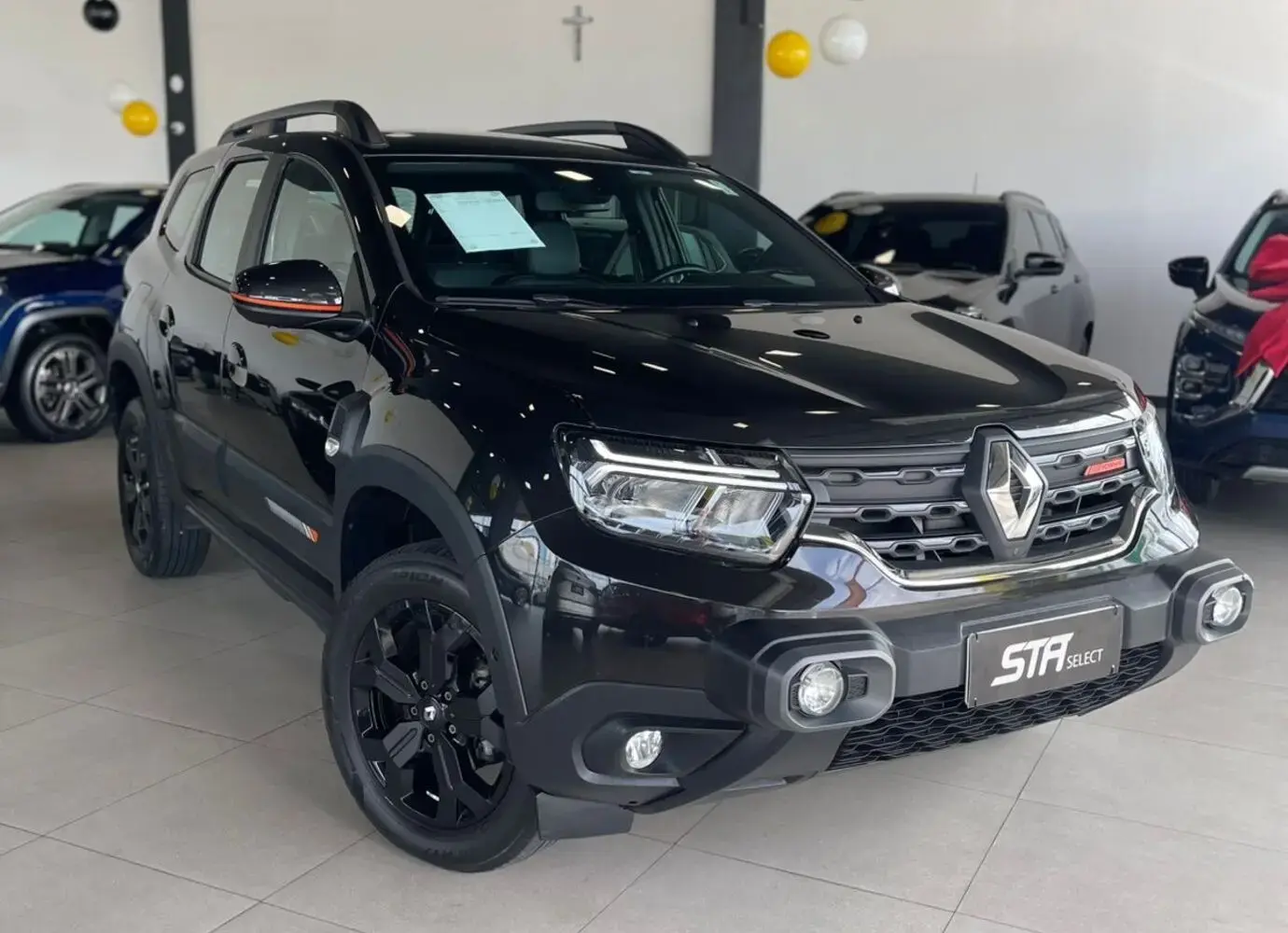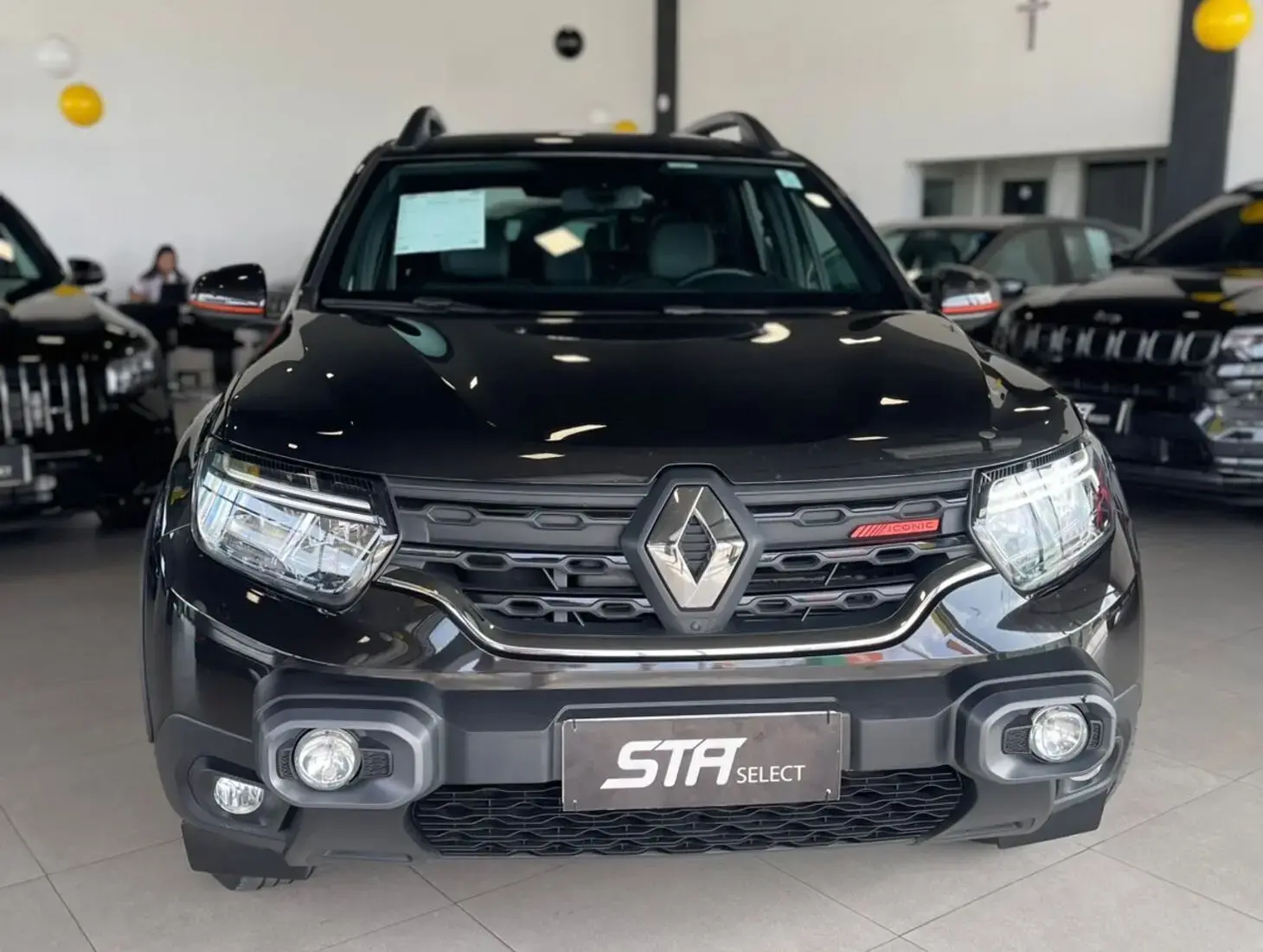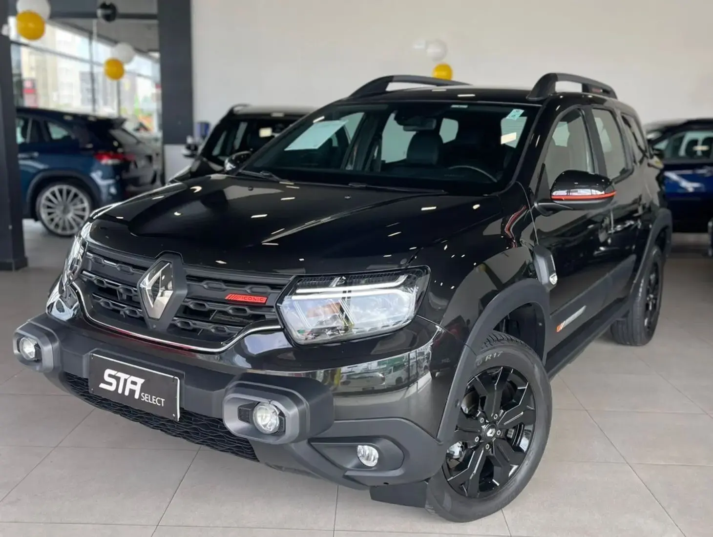 O Renault Duster Iconic Plus 1.3 TCe 2026 é a versão topo de linha do SUV, destacando-se pela motorização turbo, visual robusto com acabamentos exclusivos e tecnologia atualizada. A linha 2026 recebeu ajustes de potência para atender ao Proconve L8, mantendo o torque elevado. Motor 1.3 Turbo Flex (TCe) de 163 cv (etanol) / 156 cv (gasolina) e 27,5 kgfm de torque.Câmbio Automático CVT Xtronic que simula 8 marchas, Faróis Full LED com assinatura DRL superior, rodas de liga leve 17" escurecidas, teto e retrovisores em preto brilhante (biton), antena shark e detalhes em laranja "Energy". Bancos com revestimento premium e detalhes em laranja, painel digital, central multimídia de 8 polegadas com Android Auto/Apple CarPlay sem fio, carregador de celular por indução e sistema Multiview (câmeras 360°). Seis airbags (frontais, laterais e de cortina), monitoramento de ponto cego, sensor crepuscular e de chuva, controle de tração e estabilidade, e assistente de partida em rampa. Porta-malas: 475 litros
