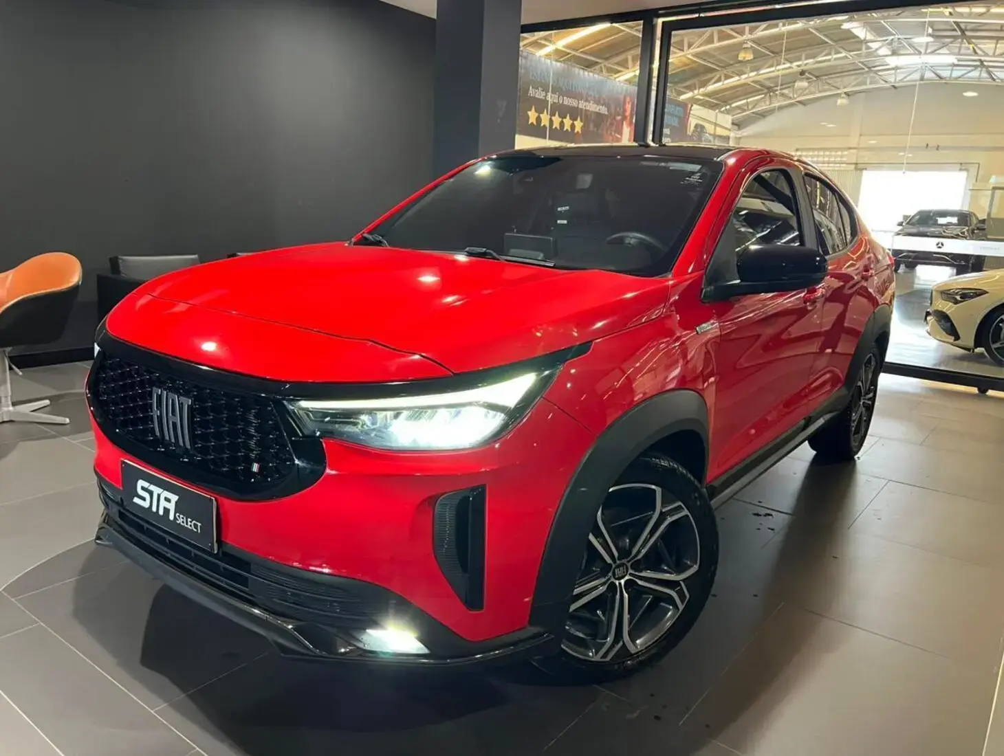 O Fiat Fastback Limited Edition 2023 é a versão topo de linha, equipada com motor 1.3 Turbo Flex (185 cv) e câmbio automático de 6 marchas. Destaca-se pelo acabamento em black piano, rodas de 18 polegadas exclusivas, badges "Powered by Abarth", e amplo porta-malas de 600 litros. Inclui ADAS, multimídia de 10", painel digital, ar-condicionado digital, freio de estacionamento eletrônico com Auto Hold e carregador por indução. Frenagem automática de emergência, alerta de mudança de faixa. Revisado